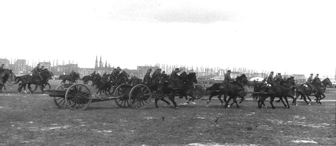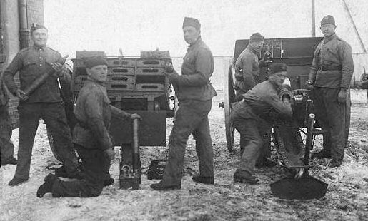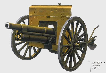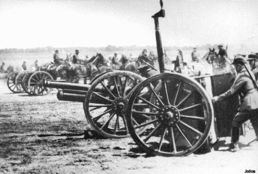 Russian model 1902 cannons were a familiar sight in Russian garrisons on annexed Polish territories, and took part in early World War I battles there. After Poland had regained independence in November 1918, only few wz. 1902 guns were found in former German or Austrian depots of war booties. In April – May 1919 there were only 20 such guns in Polish inventory, but in a course of wars with Western Ukraine and with Soviet Russia in 1918-1920, this number grew thanks to a great quantity of captured material. On 1 October 1920, Poland already had 322 cannons wz. 1902 in service, what made it second most numerous artillery piece, after 75 mm wz. 1897 cannons. From 1920, these guns started to become a standard in horse artillery of cavalry brigades – by the beginning of 1921 they replaced other artillery systems there, and remained in this role until World War II. An advantage in this purpose was their rugged construction and a low centre of gravity, allowing fast ride, despite the design was slightly heavy for horse artillery. Initially they were also used in some light artillery units. By 1920, these guns also became the most typical armament of Polish armoured trains, which were in great part war booties as well. In 1923, there were 568 guns wz. 1902 in inventory[1]. According to some sources, 108 guns were exchanged with Romania for French 75 mm wz. 1897 guns.