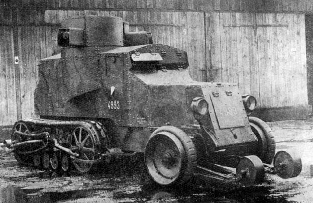 When wheeled armoured cars went into service, it soon showed, that their weight and drive type limited their usage to roads and solid ground rather. Especially it was hard for them to move in a deep snow. That is why the Russian Army got interested in a half-track drive, which was being developed since 1909 by the chief of Tsar's garages, Adolphe Kegresse. In 1915, a batch of Packard trucks were equipped with his half-track mechanism and used as ambulances. In August 1916 one of Austins the 2nd series was experimentally fitted with Kegresse device. The proving was successful, and the car was able to ride through sandy and muddy terrain freely. As a result, 182 half-track sets were ordered. All 60 new armoured cars Austin-Putilov were to be equipped with a half-track drive. Being impressed, the Russian Staff decided even to convert succesively all Austins the 2nd series to half-tracks, and to build all newly-constructed armoured cars (among others, Fiat-Izhorski) as half-tracked ones, but it was not proceeded.