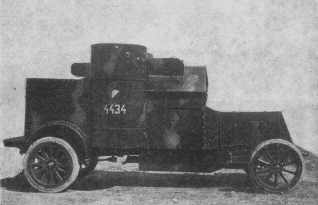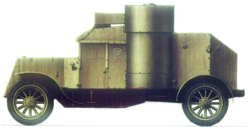 The first chassises were delivered with delay, in January 1917. During following months, the armouring work was very slow, due to a revolutionary chaos in the country. In the meantime, it was decided to fit all new cars with Kegresse halftrack mechanism (see below). However, this project was abandoned, and most of new armoured cars were finally completed as wheeled vehicles. The first few were built in early 1918. At last, when the manufacturing was transfered to the Izhorski Works, the series of 33 armoured cars was built from summer 1919 to spring 1920.