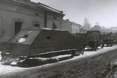 The "Józef Piłsudski", also known as "Piłsudczyk" or "Tank Piłsudskiego" (Piłsudski's Tank) was one of the very first armoured cars constructed in Poland, before the officially acknowledged date of Poland's regaining of independence (11 November 1918). In spite of a primitive design and all casemate-mounted armament, its distinctively sloped armoured plates gave it quite modern and unusual appearance. It saw combat service in Polish defence of Lwów (Lviv) against Ukrainians.