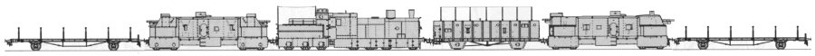 flatcar 1 | artillery wagon 1 (gun) | armoured locomotive | assault wagon | artillery wagon 2 (howitzer) | flatcar 2 |
