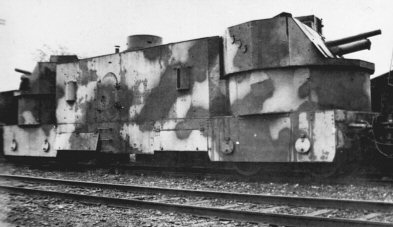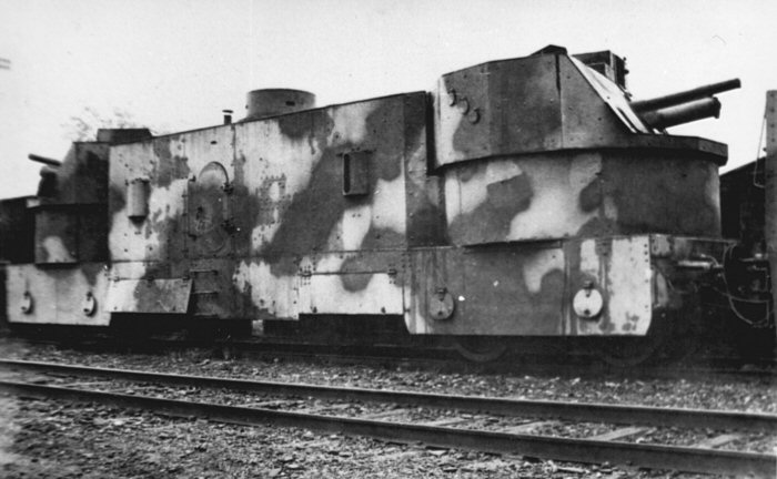 One of the "Groźny's" artillery wagons (two 75mm guns and 9 MGs) in a jagged camouflage from the early 1930s. ↑[1] ˇ[5] |