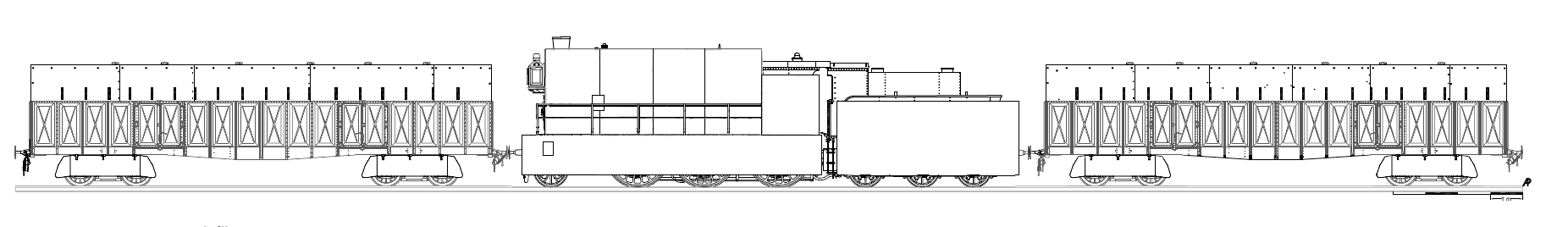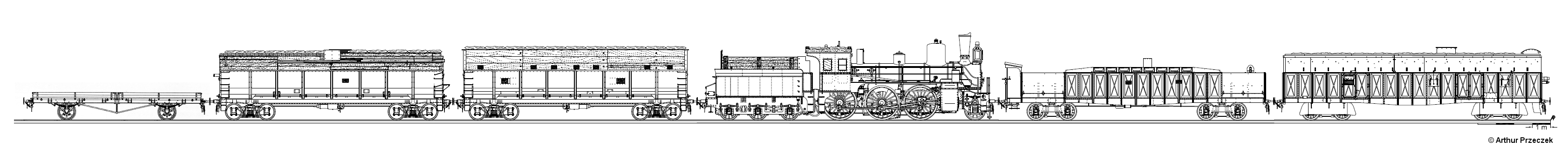 Armoured train of the 4th Railway Battalion reconstruction (based on a drawing by Arthur Przeczek – modified). |