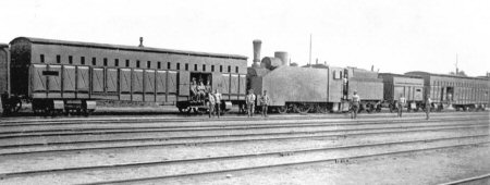 Older sources stated that this train with Fox-Arbel wagons fought against the Germans in November 1914 at Koluszki station during the German offensive towards Łódź. There is evidence of an armoured train fighting there, but it is currently unclear which train it concerns. The train in question was taken over on November 5 (November 18 New Style), 1914, in Warsaw by Staff Captain V. Vasilyev, and then the next day it entered a fight against German patrols behind Skierniewice. Its crew consisted of three officers and 95 soldiers of the 251st Stavuchany Infantry Regiment of the 63rd Division, and its armament included rifles and one machine gun[9]. On November 9 (22), the train supported by infantry captured Koluszki station, and on November 10, it tried to break through to Łódź and fought a skirmish near Żakowice. On November 13 (26), the train was temporarily taken over by lieutenant A. Savelyev of the 4th Railway Battalion, and on that day the train restored a railway connection with Łódź, driving away the German infantry. The next day, Captain V. Milevanov took over the train. However, it is not actually known which train these reports refer to. We tend to believe, that it was the first standard-gauge train, with two-axle carriages, which had a machine gun and was actively used, as is evidenced by the large number of its photos in the press of the time. There are however mentions in reports, that "the second protected train" approached Koluszki on November 9 with ammunition for Łódź garrison (delivered on November 13), and that "the second protected train with a broken steam locomotive returns to Warsaw" on November 14; therefore, it had to be a standard gauge train as well[9]. There is no certainity whether this refers to the train with Fox-Arbel wagons. However, such wagons were undoubtedly better suited to transporting ammunition and supplies than two-axle coal wagons.
