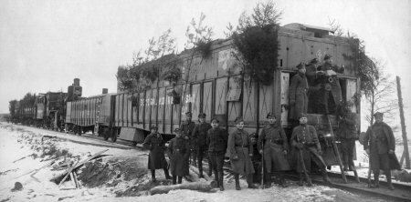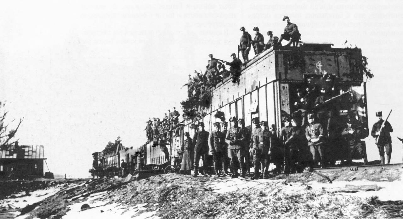 Indeed, German troops temporarily captured at least one wagon of the train during the Bolshevik retreat in February 1918, because there have been found photographs of the "Revolutionary train's" newer Fox-Arbel leading wagon in German hands, before fitting with a 76.2 mm cannon. The captured train had an unidentified locomotive (perhaps unarmoured) and another ordinary or provisionally protected covered wagon. However, the armoured wagon certainly found its way back into Soviet hands somehow (at the latest, after a ceasefire in November 1918, although German Ober-Ost units in the East retained their weapons for some time). The fate of this wagon and the anti-aircraft wagon until the autumn of 1919, when they were captured by Polish troops, is however unknown and remains only a matter of speculation.