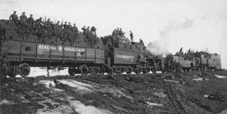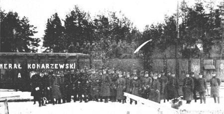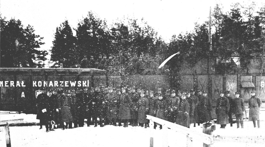 Among Polish armoured trains created from captured Soviet rolling stock, one of the most interesting was number 24 "Generał Konarzewski", despite the fact that its Polish combat career was short and the train itself was an improvised unit. It originated from one of the first armoured trains of the Russian army, originally constructed on Polish territory and used in combat almost since the beginning of World War I. Among early Russian units, it stood out by its maritime crew background and markings. It was also one of the first Bolshevik trains, numbered 1, and operated in 1918 in the same area and time as the first Polish armoured train "Związek Broni". The fate wanted, that two years later it was used by the Poles on the same line...