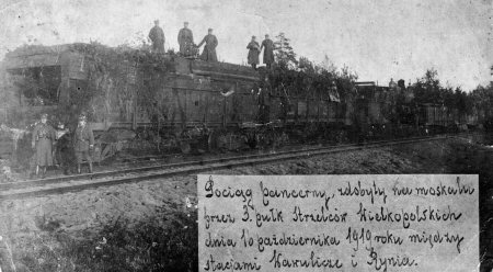 On 16 October, the 3rd Battalion of the 3rd Greater Poland Rifles Regiment (later 57th Infantry Regiment) and the 8th battery of the 3rd Field Artillery Regiment (later 14th Regiment), surprised the armoured train returning from a night shelling of Polish positions. The Poles set up an ambush near Plessy village and unscrew the tracks there. The fight took place between Vavulichy and Rynia stations (current villages of Dubovka and Kovali)[note 5]. The battle participant described: then to the right in the forest single shots can be heard, followed by a prolonged, dry machine gun bang... The sound of machine guns is getting closer, a thin smoke trail appears above the forest, and after a moment, green-gray body of the Bolshevik armoured train emerges from behind trees. According to an anonymous account, one cannon grenade exploded inside the machine gun wagon, killing the crew, and other grenade broke the steam engine boiler, after which the train was captured by Polish soldiers. The history of the 57th Regiment says: the enemy tried to defend himself, but under the pressure of delighted outposts, which sprang up and ran to the train, slipping on the snow, part of enemies gave up, and part escaped to the nearby forest, where they were caught by neighboring companies... After some time almost all battalion gathered and moved the train some 3 kilometres back. Polish losses are not precisely known, but apparently they were insignificant. It may be noted, that erroneous dates September 16 or November 16 are also encountered.
