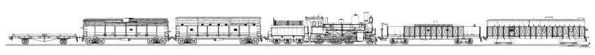 These wagons could have been converted to the standard track, but it is not certain whether the train was a standard gauge one because of a locomotive used. According to the photos, it had a steam locomotive with an axle arrangement 2'B (2-2-0) and a three-axle tender, most probably of the Russian broad-gauge PR (ПР) class[9]. It was originally an express train locomotive, 12 of which were built in the years 1902-1905 for the broad-gauge branch Warsaw – Kalisz of the Warsaw-Vienna Railway, as type 83 of the Kolomna Works. The steam locomotive was covered on the sides with high, inclined flat steel plates, retaining the railings around the boiler typical for Russian locomotives. It does not seem logical to have converted the locomotive to a standard gauge, what was a complicated refit, since there were a number of standard-gauge locomotives available. Therefore we suspect, that the train originally had other standard-gauge armoured locomotive, but there are no photographs confirming this. It is notheworthy, that the first built train had a standard-gauge locomotive, replaced with the same PR class afterwards, when it operated as a broad-gauge train. It cannot be ruled out either, that at the beginning the second train had a different rolling stock, similar to the first train.