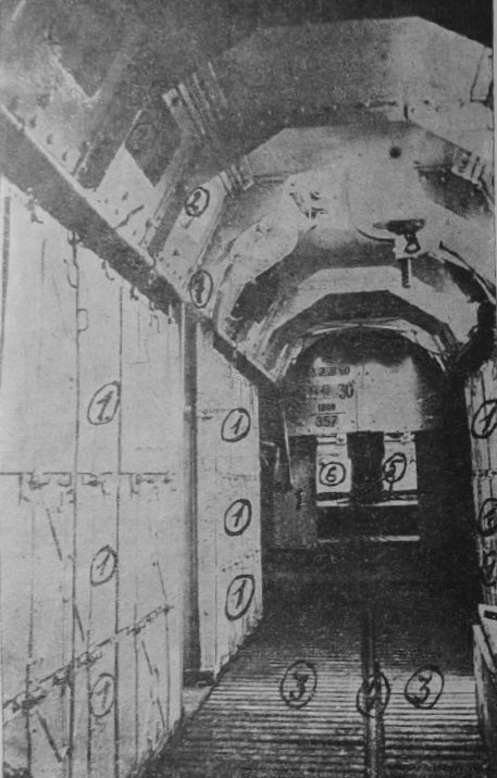 Krasnoye Sormovo wagon interior (from a Soviet manual) 1. ammunition racks, 2. hatches of a raised roof, 3. removable wooden floor, 6. entrance to the turret |