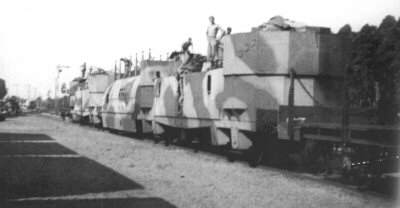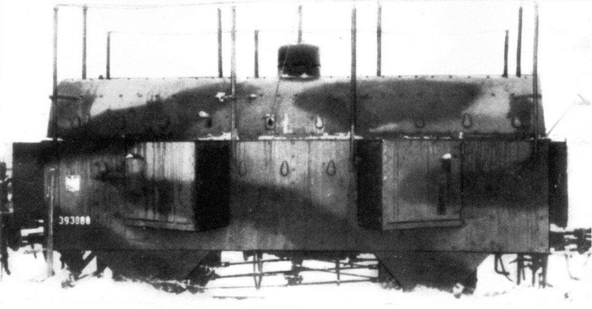 On both ends of the armoured section there were two two-axle flatcars. Their primary function was to carry engineering materials for track repairing (tools, rails and sleepers, logs, explosives, etc). The second purpose was to protect the train against mines or a derailment. There could also be carried eg. bicycles and scout motorcycles (part of them was carried on the auxiliary train's flatcars). During march, there could be an observer upon the flatcar, operating a braking valve. Since 11 September 1939 the train nr.51 was fitted with an additional 40 mm wz.36 Bofors AA-gun, seated upon one of flatcars.