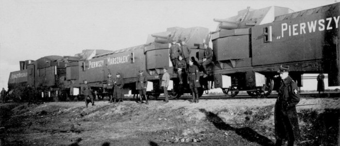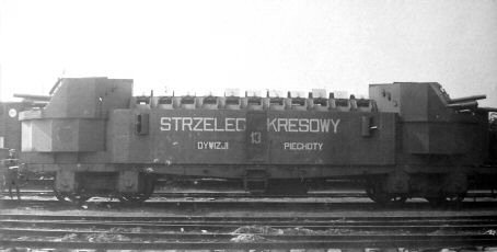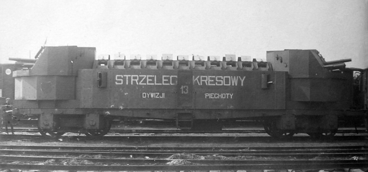 During Polish-Soviet war, in 1919 and 1920 Polish forces captured many Soviet broad-gauge armoured trains. Several of them were modern ones, better armed and armoured than contemporary Polish partially improvised units. One of such captured trains had probably the most interesting and longest life of all the armoured trains in the world. Its artillery wagons served for 25 years in different armies: Soviet, white Russian, Polish, Soviet again, and finally German. In the Polish Army they served for the longest period of 19 years, firing their guns in several campaigns. They also definitively ended their combat career on Polish soil.