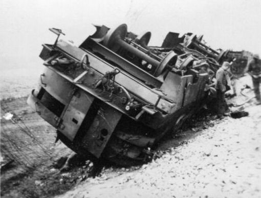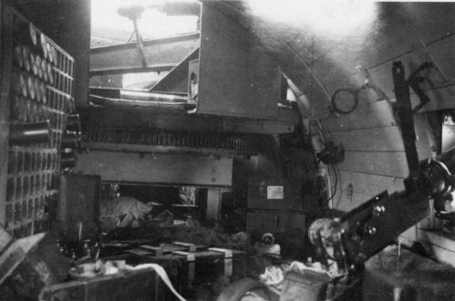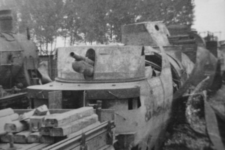 As above. An armour belt with AAMG turret, torn off from the roof, lays on a ground. |