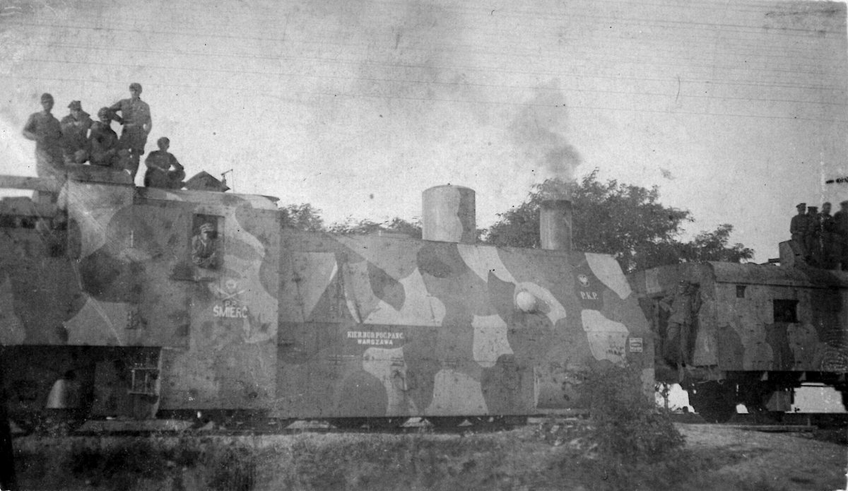 The original train "Śmierć" was formed in August 1920 by the Armoured Train Construction Management (KBPP) in Kraków (Cracov), on the order of the Supreme Command of the Polish Army from July 1920, regarding urgent construction of new trains to replace units lost in summer on the front of the Polish-Soviet war[note 1]. At that time, the Red Army had repelled allied Polish and Ukrainian forces from western Ukraine and was advancing towards Lviv and Warsaw. The armoured stock of the train was built at Zieleniewski Works in Kraków. The train was built under the name "Śmierć komunie" (Death to the communism), in a spirit of Soviet trains' names, like "Smiert' Direktorii" (Death to the Directorate) or "Smiert' parazitam" (Death to parasites), but the Polish headquarters accepted only the name "Śmierć" (Death). It was assigned a number 23 (P.P. 23 – Pociąg pancerny – armoured train nr 23). The other train constructed in Kraków was "Bartosz Głowacki". The train's commander, Lt. Henryk Amrogowicz and most of the crew came from a destroyed wide-gauge train P.P. 5 "Piłsudczyk-szeroki".