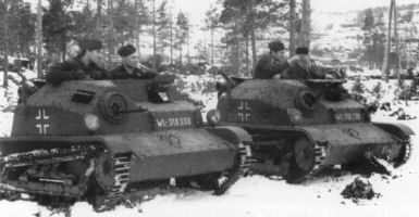Below: two TKS of the Luftwaffe, in Finland. Right: a TKS in a forest, possibly in an anti-partisan action. | ![]() |