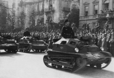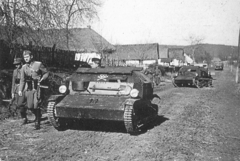 Up to 20 Polish tankettes, among them 4 TKS armed with 20 mm guns, were withdrawn in September 1939 to Hungary, first of all, with the 10th Cavalry Brigade. They were interned there and next taken over by the Hungarian government. Finally, 9 TK-3 and 7 TKS were commissioned by the Hungarian Army (part of TK-3s were actually TKF variant with newer Fiat engine and suspension). They were used for training and auxiliary duties. They might have also been used in cyclist battalions, along with Italian Ansaldo 35M, or in combat against Yugoslavian partisans (what would explain a presence of the TKF in Yugoslavia, which, according to some information, was captured from the Hungarians in Serbia). No photos of Hungarian vehicles are known, though.