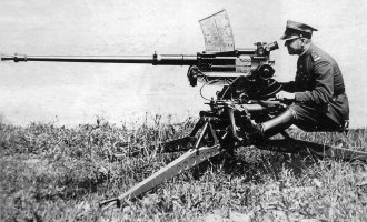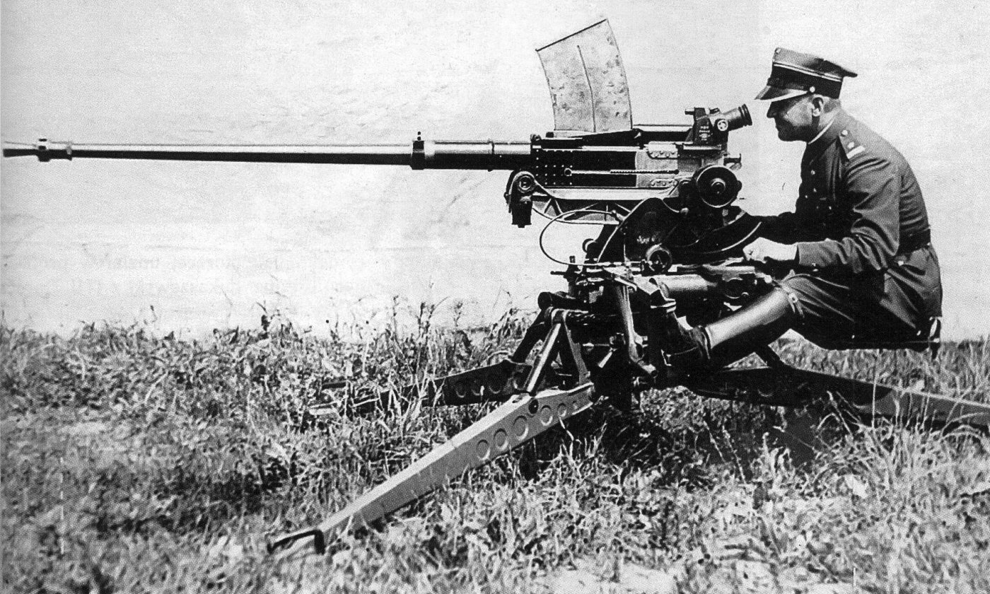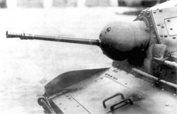 Initially, it was planned to arm TK tankettes with French 13.2 mm wz. 30 Hotchkiss machine guns. According to one author, one TK-3 tankette was tested with the 13.2 mm MG mounted provisionally in an universal ball mounting[10]. Unfortunately, no photographs of such vehicle are known. Its armour penetration however appeared too low, and bullet dispersion was found too high, so it was abandoned in a favour of 20 mm cannon (the latter drawback – 60 cm dispersion on 100 m distance, was probably a matter of a provisional mounting only). Despite it, a small batch of 16 machine guns wz. 30 was bought in 1932 and they temporarilly armed Vickers E tanks. It should be however noted, that 13.2 mm machine gun, with its sticking out long bent forward magazine, would not fit under the tankette armour without a very complicated redesign – which might have been among reasons to abandon rearmament of tankettes, albeit not recorded in available documents.