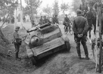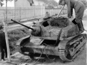 For an illustration purpose, LTM-35 knocked out evidently by Polish 37 mm anti-tank guns, probably at Sieraków on 19 September. |