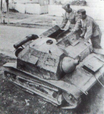 In a course of the campaign, tankettes with cannons were also used in the motorized-armoured group of Warsaw Defence HQ. As far as it is known, they came near the end of the siege of Warsaw only (on 20-22 September). Probably two came from the 71st Armoured Unit, because Roman Nawrocki and Edmund Roman Orlik got to Warsaw with their tankettes[note 5]. Nawrocki's tankette at least had no encounters with tanks there (although tanks were used by Germans, among others in a last assault on 26 September, after which a surrender talks started). It was believed for a long time, after Orlik's account, that there was only one such tankette in Warsaw, but lately there was revealed a photo of surrendered equipment, showing at least two, but probably even three tankettes with cannons (this information was published for the first time on our page, in 2014 update). There can't be excluded a possibility, that one or more tankette might have been taken from PZInż works, provided that peculiar vehicles from the third series had been sent there before the war for a rearmament – which is not known.