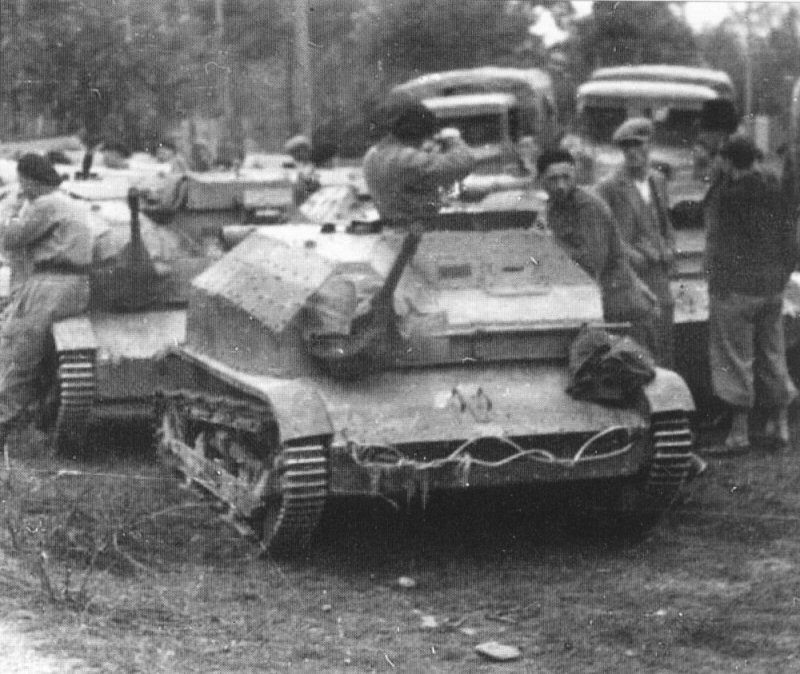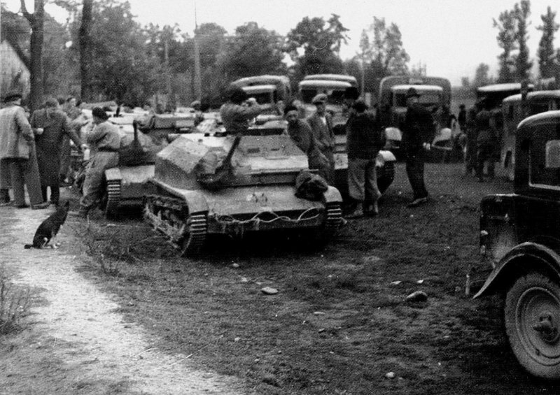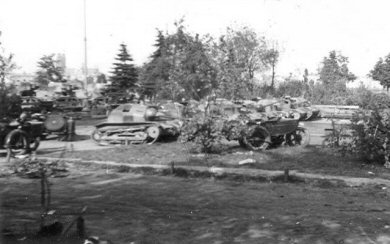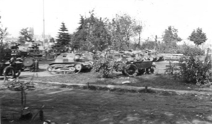 The vehicles gathered after a fall of Warsaw – visible are probably three cannon-armed TKS, including one wihout a mantlet cover (the one on the photo in the beginning of a chapter is the 4th from right). |