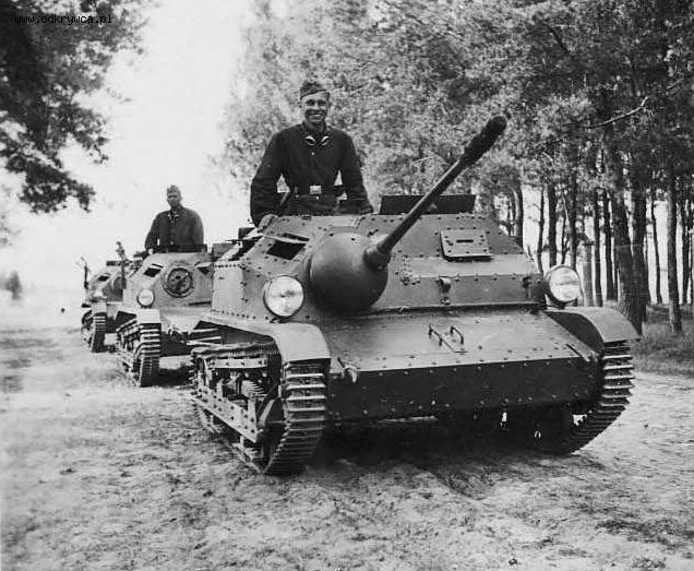 3. The literature claims, that on 9 September the 71st Armoured Unit acquired a cannon-armed TKS in an abandoned railway transport at Jackowice. Władysław Tritt reported in his accounts (albeit without a date), that he found this TKS, being sent out to a patrol from Zduny village, then he towed it to Łowicz and gave it to a repair patrol from a "tankette company from Poznań", because his unit was not in Zduny anymore. It is not clear, because the 71st Independent Reconnaissance Tank Company (mobilized by the 1st Armoured Battalion from Poznań) fought at Łęczyca, some 40 km west, and the 72nd Company even farther. He added, that "after putting into service, the tankette took part in further combat". It is assumed, that it was used by the 71st Armoured Unit afterwards, but we don't know any first hand sources to confirm it without a doubt. It is also universally assumed, that the tankette originated from the 81st Armoured Unit – but it is not known, if it was the tankette with a broken down engine, or maybe sent back to the unit after an overhaul.
