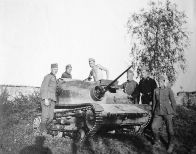 Apart from four cannon-armed tankettes of the 10th Cavalry Brigade withdrawn to Hungary, the rest were destroyed or abandoned due to damage or technical reasons during the campaign, and were seized by the Germans. There exist several photos of at least one cannon-armed tankette with German modifications, notably uncovered headlights on fenders. Details of their German service are not known, although it apparently concerned no more, than a couple vehicles (Polish tankettes were generally used by the Germans to auxiliary and security duties only, where cannons were less useful). The Hungarians impressed seven TKS in total into service, but Hungarian sources don't mention cannons as tankettes' armament.