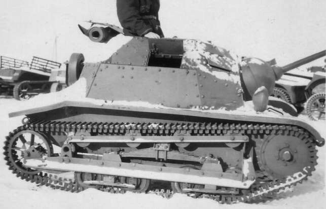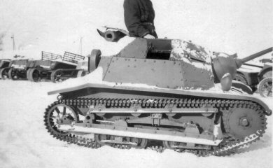 ↑↑ An unidentified abandoned cannon-armed TKS, possibly from the 61st Independent Reconnaissance Tank Company. A purpose of a dark rectangle next to a driver's visor is not clear (unit sign?). |