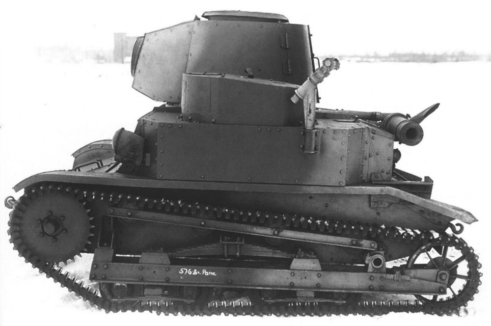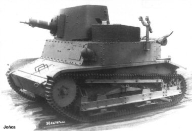 At first it was decided to build six experimental tanks. The prototype was converted from the TK tankette nr. 1164, of the first trial series, made of mild iron plates, at the end of 1932. Due to a lack of armour, it was not combatworthy. According to publications, it was first armed with a standard 7.92 mm air-cooled wz.25 Hotchkiss machine gun, however there are no photographs with the wz.25 MG fitted, so it is not clear if it was armed at all. In October 1933, more reliable water-cooled 7.92 mm wz.30 (Browning) machine gun was mounted. The trials conducted that month revealed turret faults, like: a lack of space, bad stability of the gun mounting, poor observation conditions, and especially poor ventilation. As a result, the improved turret was developed in 1934, with a lengthened box-like front part, and ventilation slots under the hatch on the top. Judging from the mounting type, it returned to the standard air-cooled wz.25 Hotchkiss machine gun, although there are no photos known of the improved TKW with the machine gun fitted. The exact chronology of turret changes is unfortunately not clear.