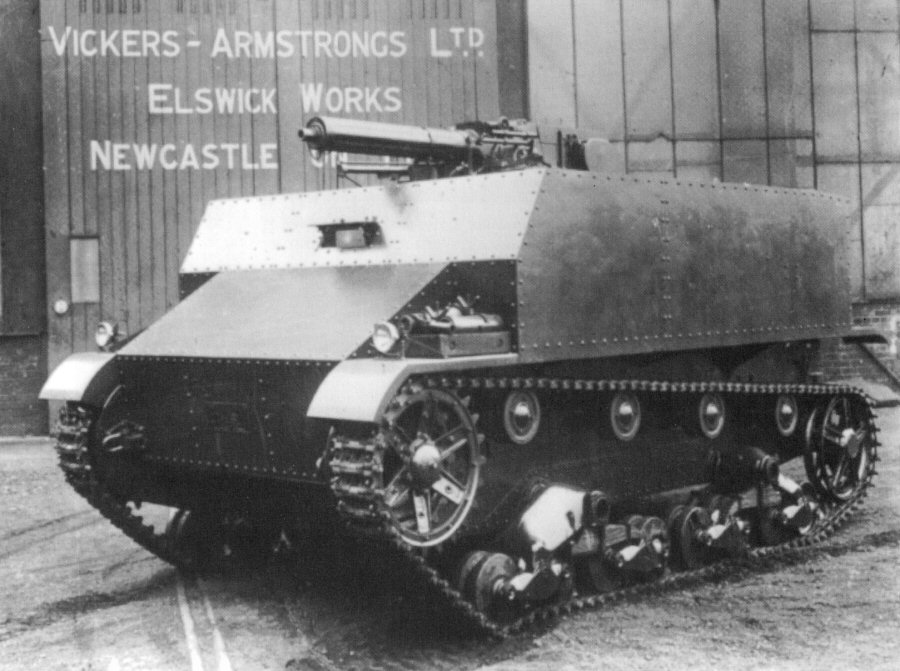 As early as in 1928, there was an universal Vickers Medium Gun Tractor designed on the Vickers 6-ton tank chassis. It was meant for military and civilian market as well. It was tested with the Dorman engine in a tall rear compartment as well as with horizontal Armstrong-Siddeley engine. The British Army evaluated the tractor between 1930 and 1932, but finally rejected it. In 1932 one vehicle was bought by the German company Siemens-Schuckert.