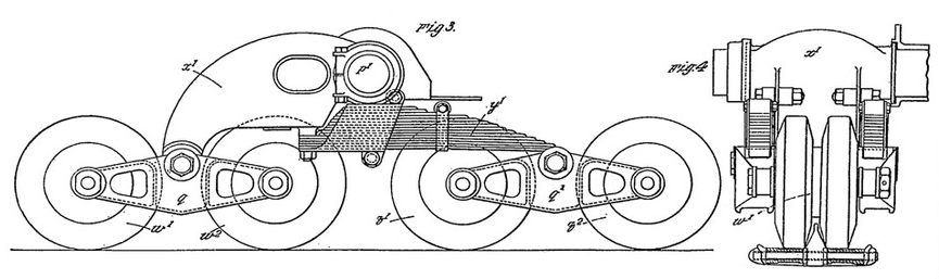 For the Vickers Mk. E tank, enginer N. Straussler designed a special trench-crossing gear. It was a lever device, which allowed tank to cross wide trenches. It was advertised by Vickers, but in practice it appeared impractical and unsuccessful (a photo on the right, probably of the British tank evaluated in Poland – note observation slots with flaps and a can oil cooler, used on some tanks).