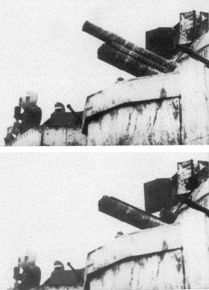 ↑↑ 75 mm wz.02/26 guns in Polish trains Nr. 13 ("Generał Sosnkowski") and Nr. 15 ("Śmierć") in September 1939. Note distinctive recuperator's front cover of wz.02 guns and their derivatives. | ||