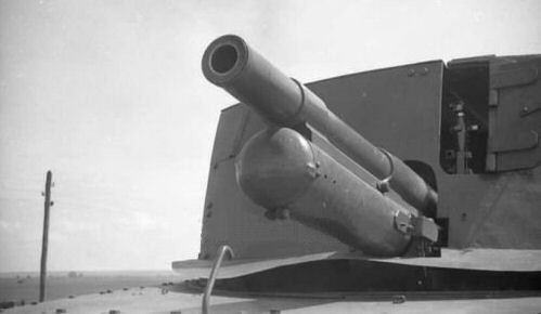 The 75 mm wz.02/26 gun in armoured train "Pierwszy Marszałek" in the 1930s. |