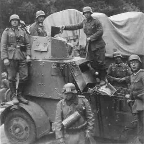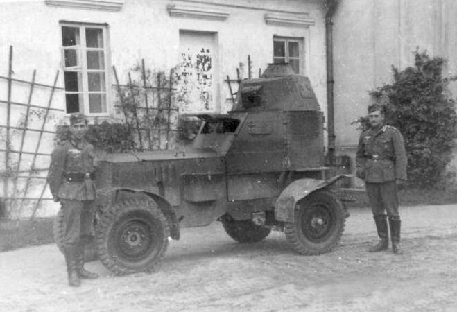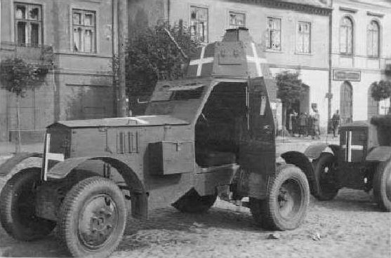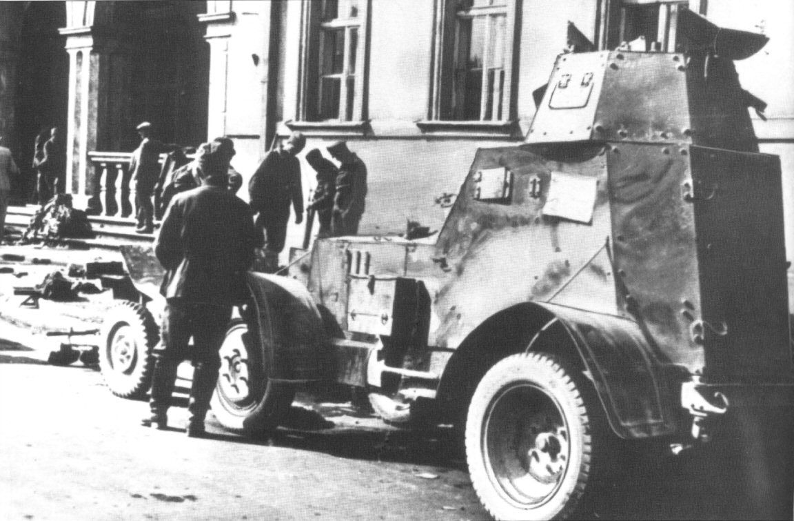 ![]() | Wz.34 armoured car with a newer hull, according to some captions, in Warsaw. Cars in a background are German. |