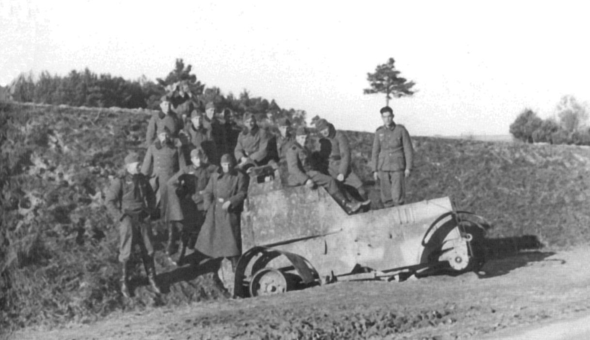 An armoured car wz.34 with a newer hull with a bumper, abandoned in a wood – it might be suspected, that it belonged to the 51st Armoured Unit as well, possibly near Iłża. |